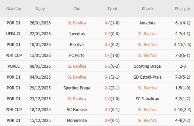 Phong độ của Benfica