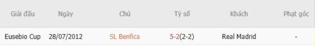 Thành tích đối đầu quá khứ giữa Benfica vs Real Madrid
