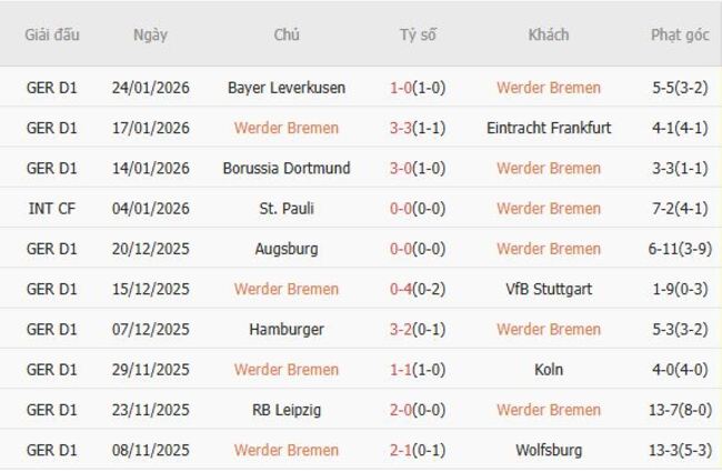 Phong độ của Bremen