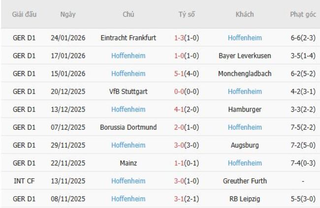 Hoffenheim của Christian Ilzer kết thúc mùa giải 2024-25 ở vị trí thứ 15, nhưng mùa giải ấn tượng của họ cho đến nay đã khiến người hâm mộ nhớ lại những chiến dịch châu Âu của những năm trước. Die Kraichgauer bước vào trận đấu này với chỉ một trong chín trận gần nhất tại Bundesliga, thắng sáu và hòa hai, và đội bóng đang có phong độ cao này sẽ tự tin khởi đầu năm 2026 một cách mạnh mẽ.