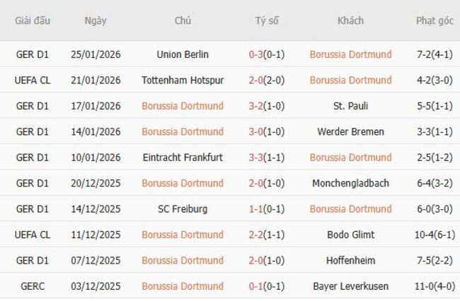 Phong độ của Dortmund