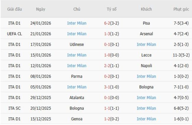 Sau khi để mất chức vô địch Serie A vào tay Napoli mùa trước, ngay trước khi bị PSG đánh bại trong trận chung kết Champions League, Inter hiện đang có vị thế tốt để giành lại Scudetto. Sau chiến thắng hủy diệt 6-2 trước Pisa hôm thứ Sáu, họ đang dẫn trước đối thủ cùng thành phố AC Milan 5 điểm và Napoli 9 điểm.