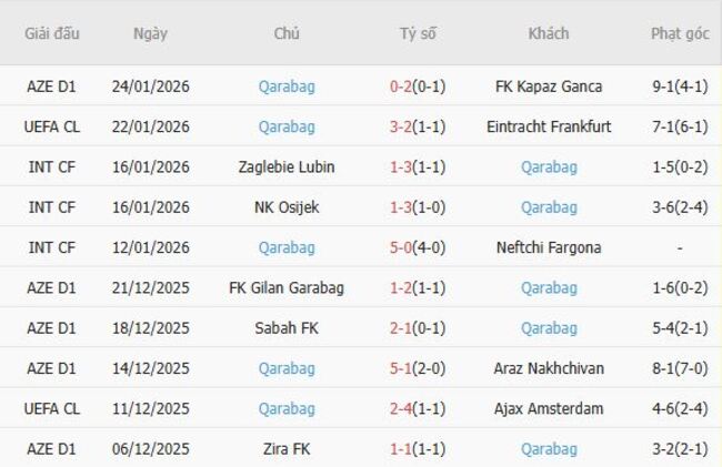 Phong độ của Qarabag
