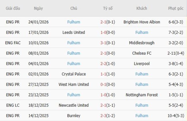 Hiện đang đứng thứ bảy trên bảng xếp hạng và chỉ cách top bốn bốn điểm, Fulham cũng có được sự hồi sinh mạnh mẽ trên sân khách nhờ thứ hạng đáng hài lòng này, khi giành được 10 điểm từ năm trận sân khách gần nhất tại Ngoại hạng Anh sau khi chỉ giành được một điểm từ sáu trận đầu tiên ở mùa giải 2025-26.