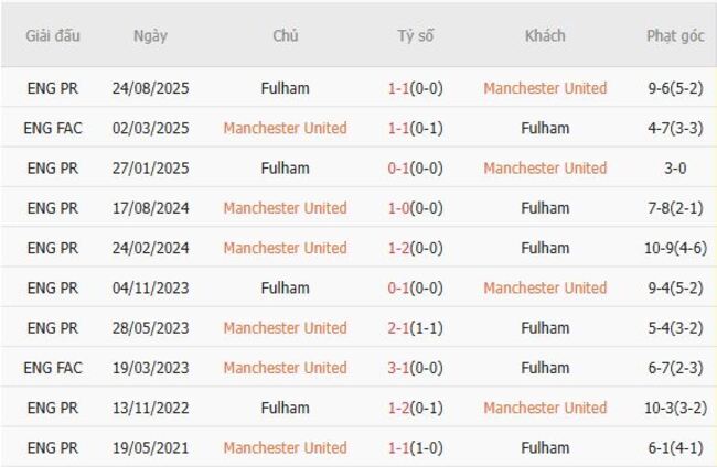 Thành tích đối đầu quá khứ giữa Man United vs Fulham