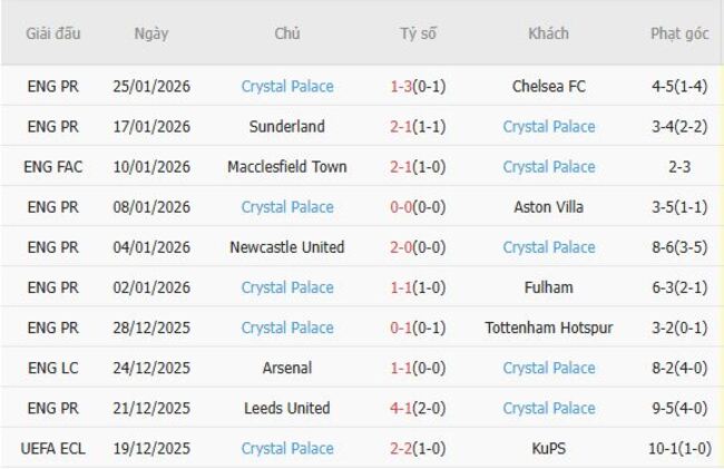 Sau một mùa giải 2024-25 xuất sắc, trong đó họ giành Cúp FA và giành quyền tham dự UEFA Conference League, Palace đã gặp rất nhiều khó khăn trong mùa giải này. Hiện tại, Crystal Palace chưa thắng trận nào trong 11 trận gần nhất ở tất cả các giải đấu, kể từ chiến thắng 0-3 trên sân khách trước Shelbourne vào ngày 11 tháng 12. Với 28 điểm tại Premier League, họ chỉ đứng trên khu vực xuống hạng ba bậc.